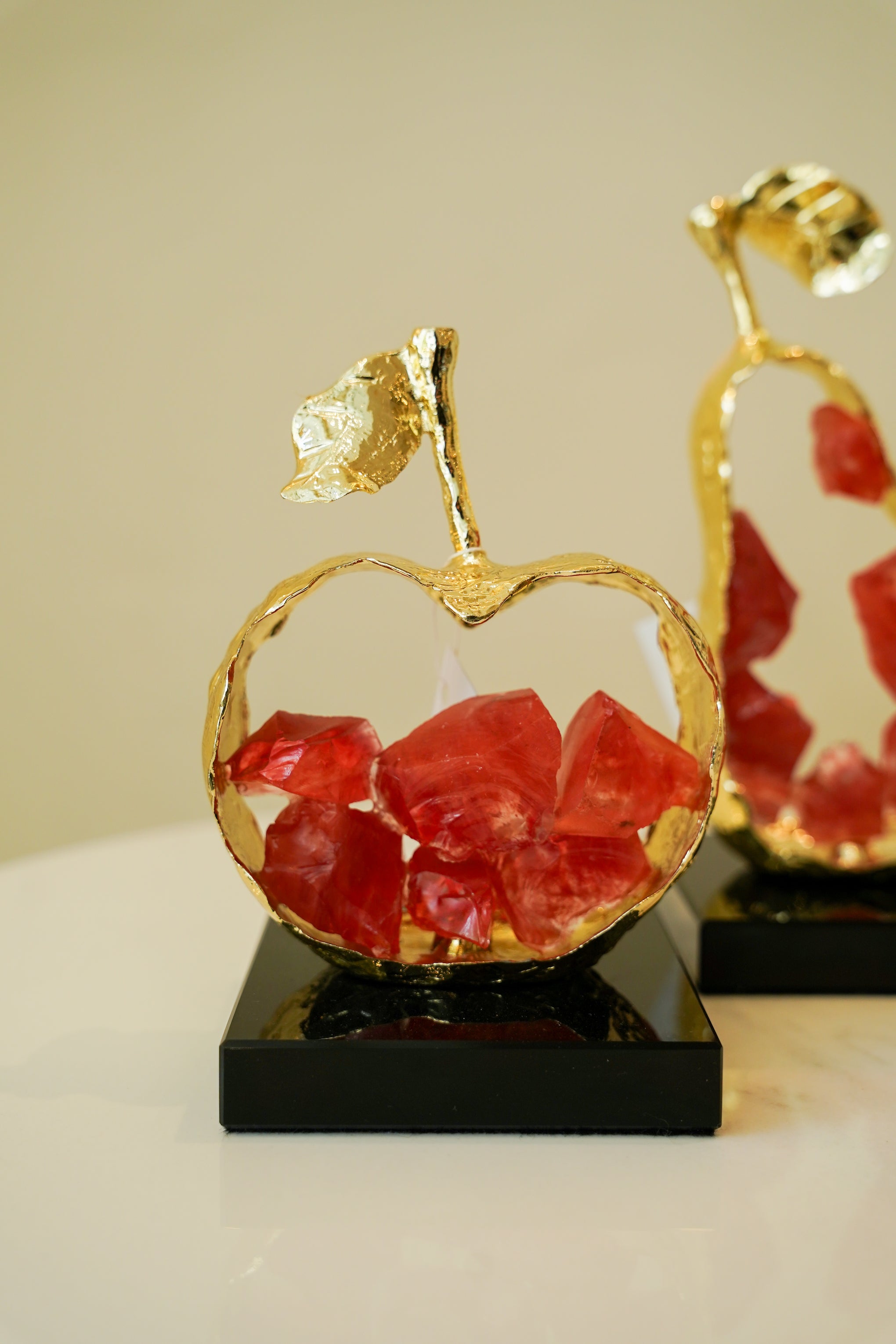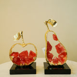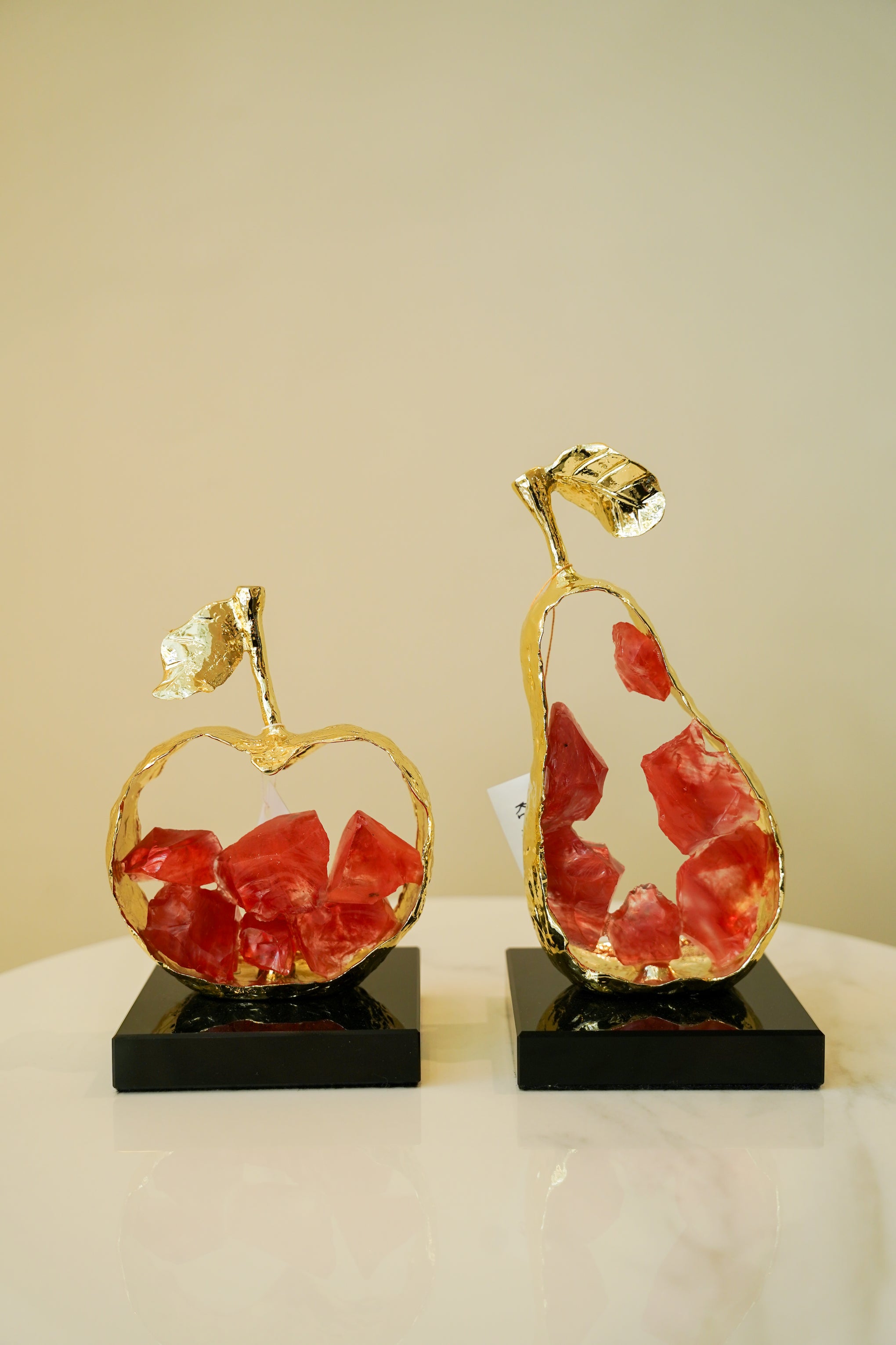 This exquisite set showcases an apple and pear crafted with intricate red gemstone work. A striking blend of natural forms and refined shine, ideal for elegant kitchens, dining areas, or statement decor corners.