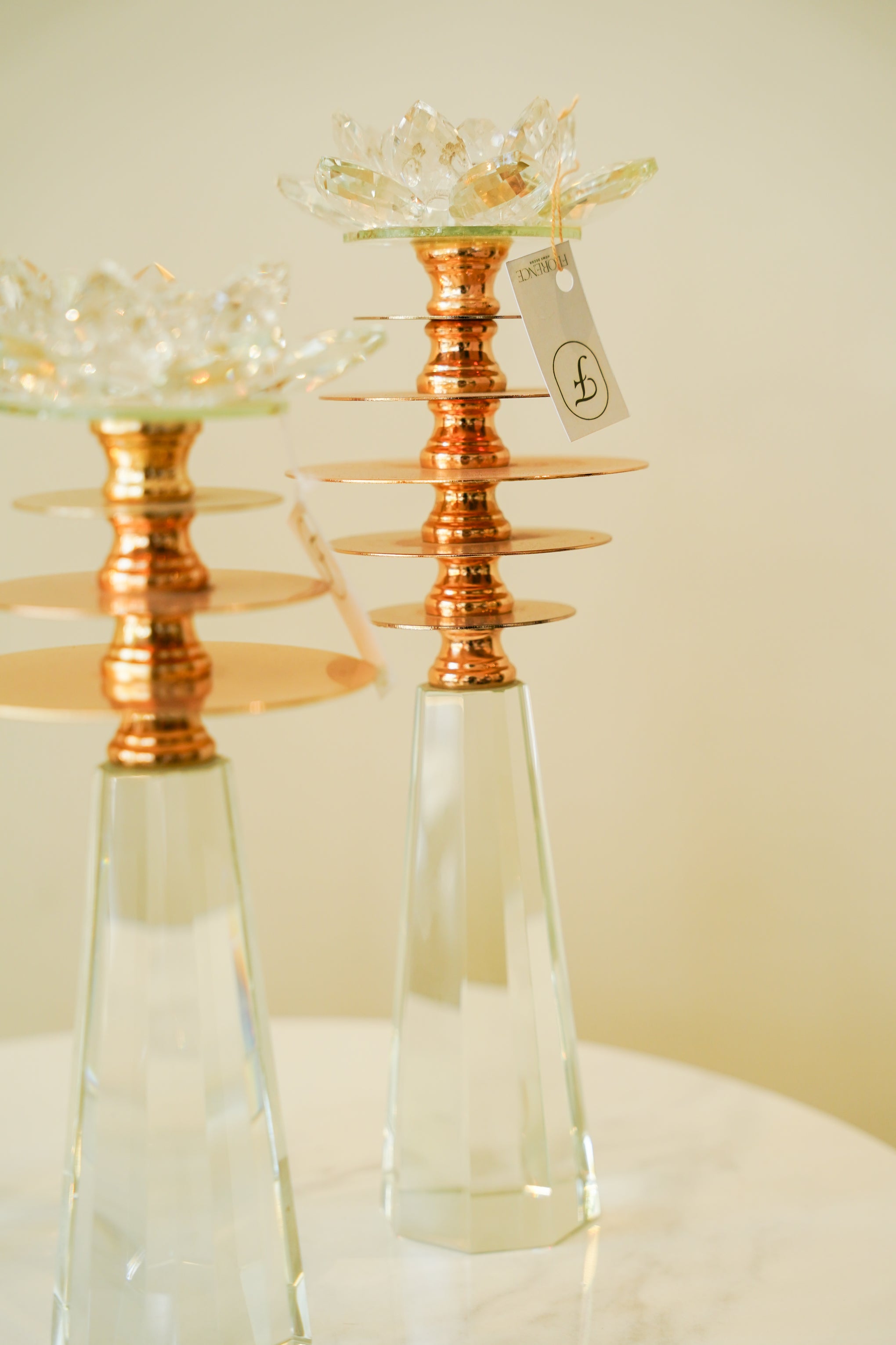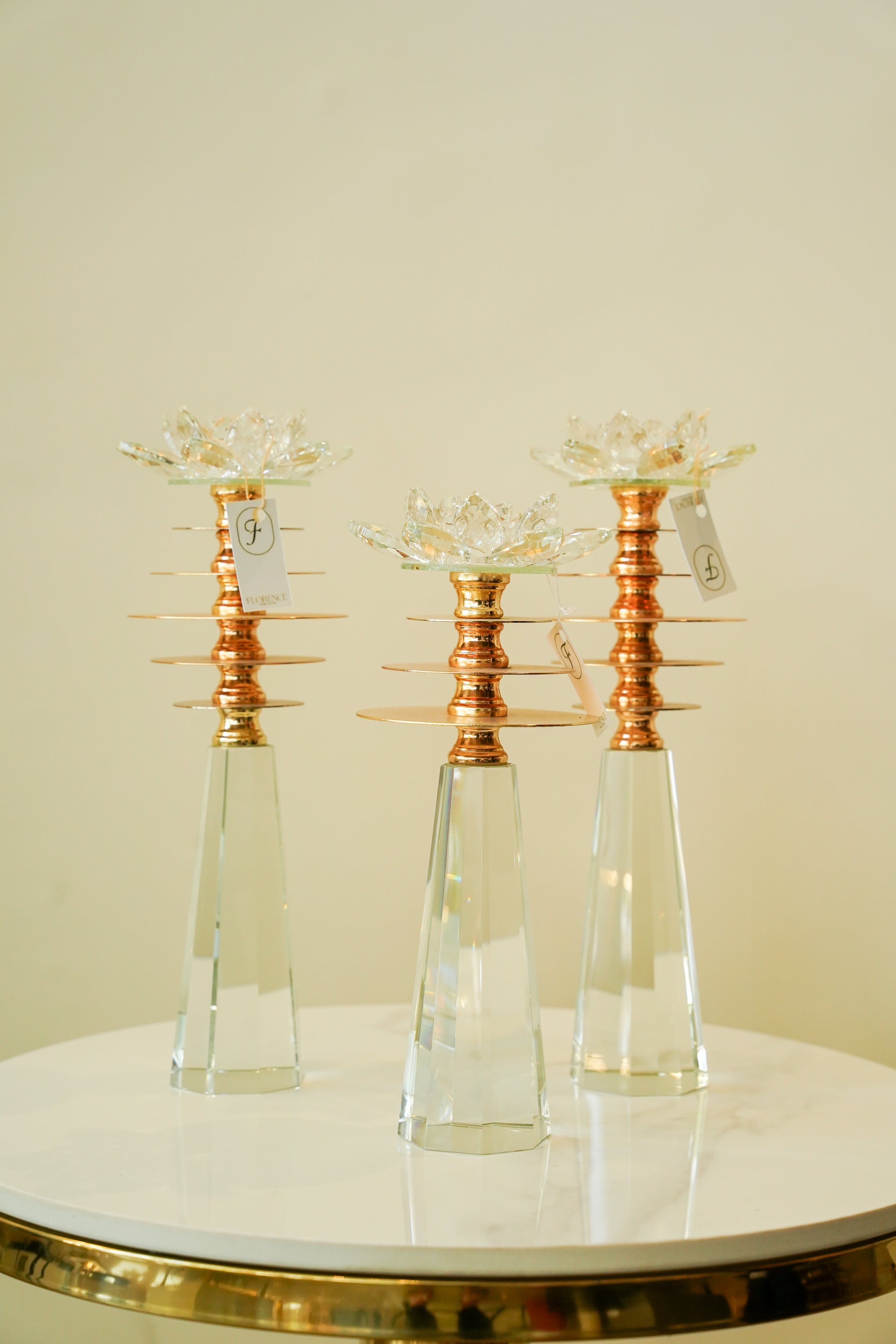 Crafted to dazzle, each stand showcases brilliant crystal clarity and a balanced, modern form. Whether displayed together or apart, this trio adds sparkle and serenity to any room.