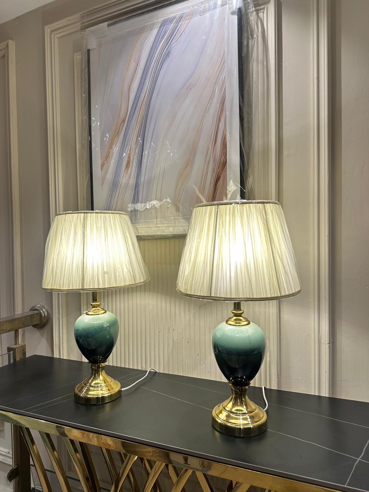 Add a touch of elegance to your space with the Emerald Glow Dual-Tone Lamp Pair. Featuring a rich green base blended with a subtle contrasting tone, these lamps bring a perfect balance of color and sophistication. Ideal for bedside tables, consoles, or living room corners, their contemporary design enhances both modern and classic interiors. Sold as a pair for a cohesive, stylish look.