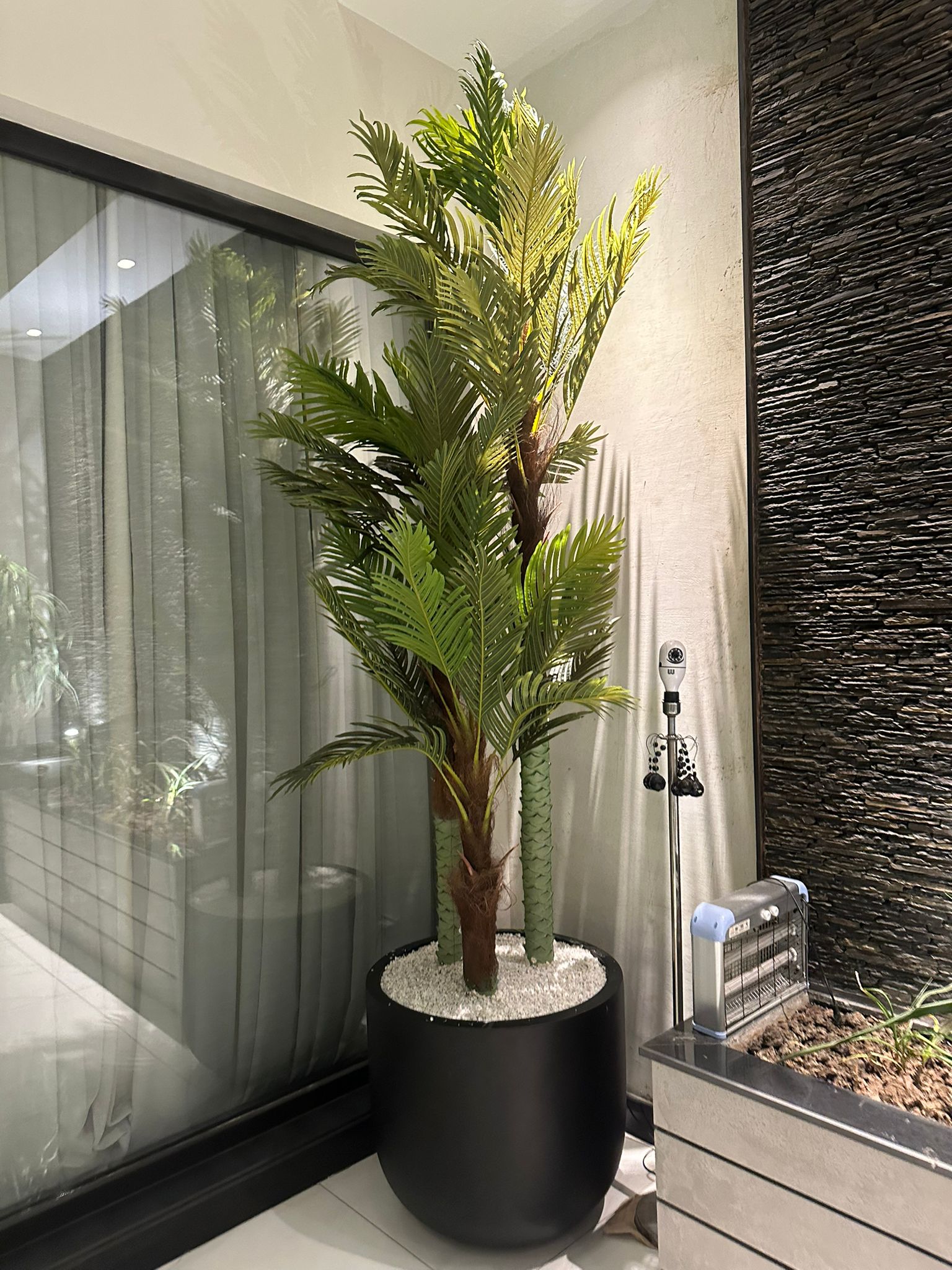 Large chinese palm tree with black grp