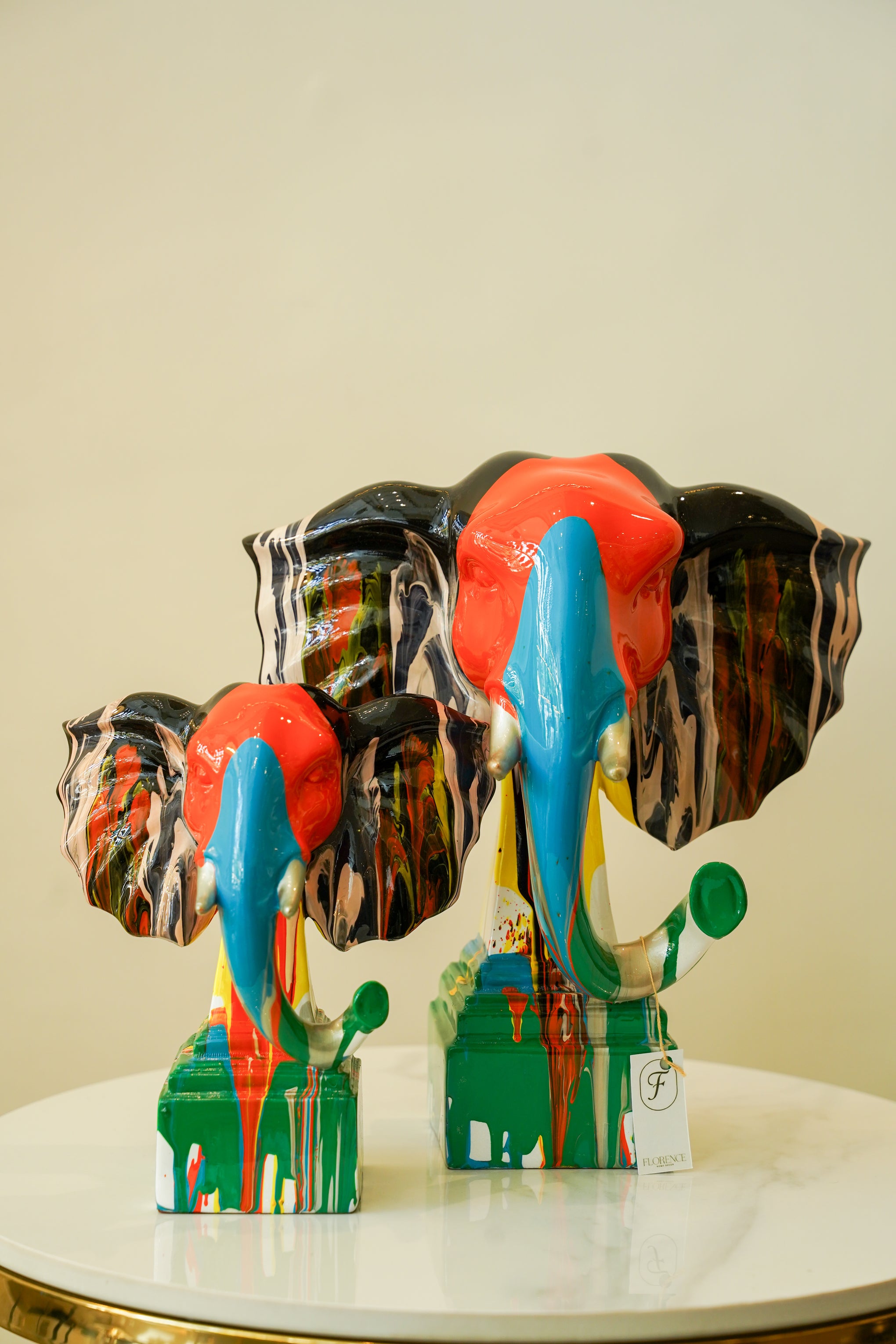 Celebrate color, culture, and charm with this beautifully detailed elephant decor set. Each piece is adorned in vibrant hues and artistic patterns, symbolizing wisdom, strength, and good fortune. Perfect for adding a joyful, regal touch to consoles, shelves, or entryways.
